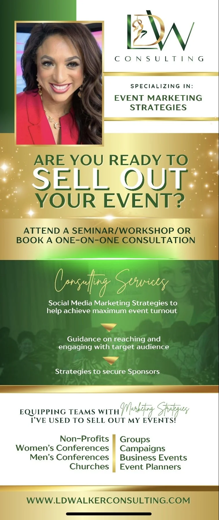Are you and your team getting ready to host a church conference, women’s conference, men’s conference? Are you a book author getting ready to host a book signing, are you a small business owner getting ready to host your grand opening? How about running for political office? Are you in need of marketing strategies to help promote your campaign fundraiser or meet & greet? Is your non-profit planning a Gala?